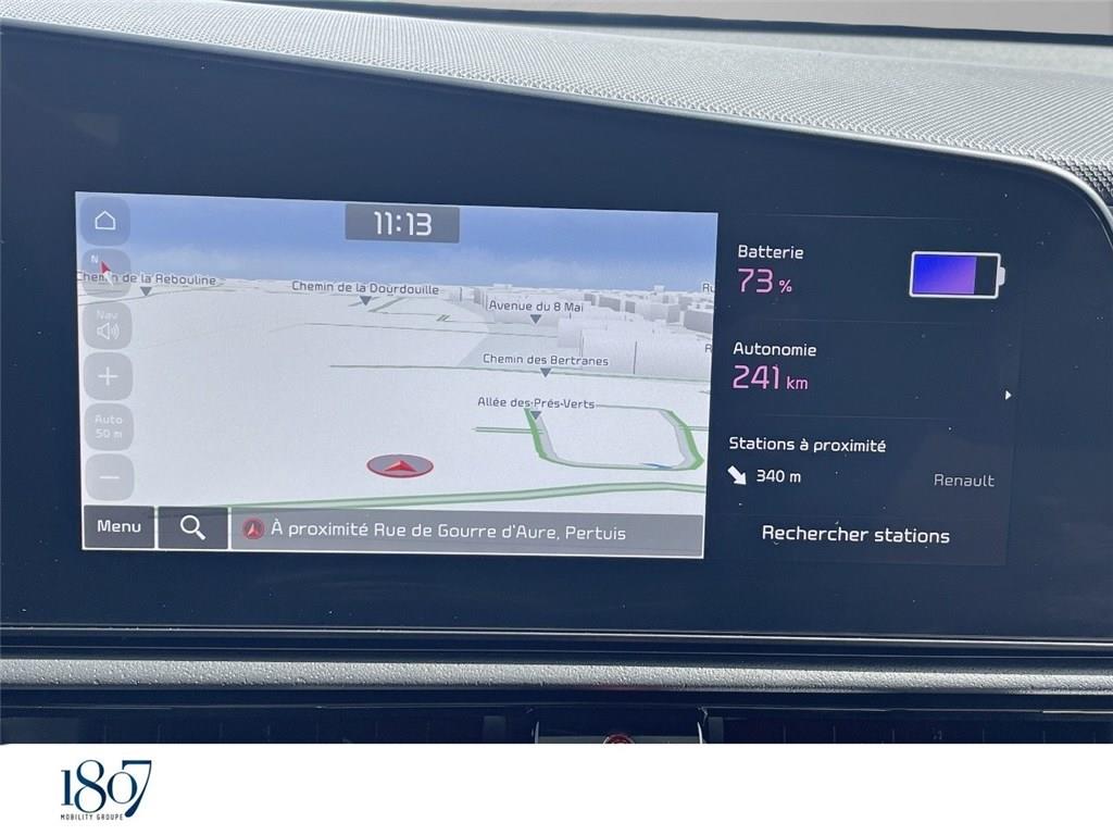 Aérateurs aux places AR|Bouclier de protection finition chrome|Câble de recharge pour prise domestique|Capteurs de stationnement AR|Capteurs de stationnement AV|Climatisation automatique avec fonction "Driver Only"|Coques de rétroviseurs couleur noir laqué|Ecran tactile couleur 10,25'' avec compatibilité via câble USB Android Auto et Apple CarPlay|Jantes en alliage 17"|Modulation automatique de la puissance de freinage régénératif (Smart Regenerative Braking System|Palettes au volant (modulation de la puissance du freinage régénératif)|Peinture Blanc Céleste|Plancher de coffre modulable|Poches aumônières au dos des sièges AV|Reconnaissance des panneaux de limitation de vitesse (ISLW)|Régulateur de vitesse adaptatif (SCC)|Sellerie mixte tissu/cuir artificiel noir fusain|Système de navigation avec cartographie Europe et services connectés Kia Connect Live offerts